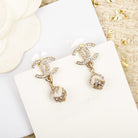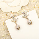 DOUBLE C DROP BALL GOLD DIAMONDS EARRINGS
