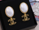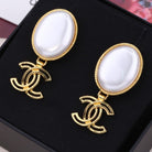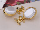 DOUBLE C GOLD WHITE DROP EARRINGS