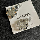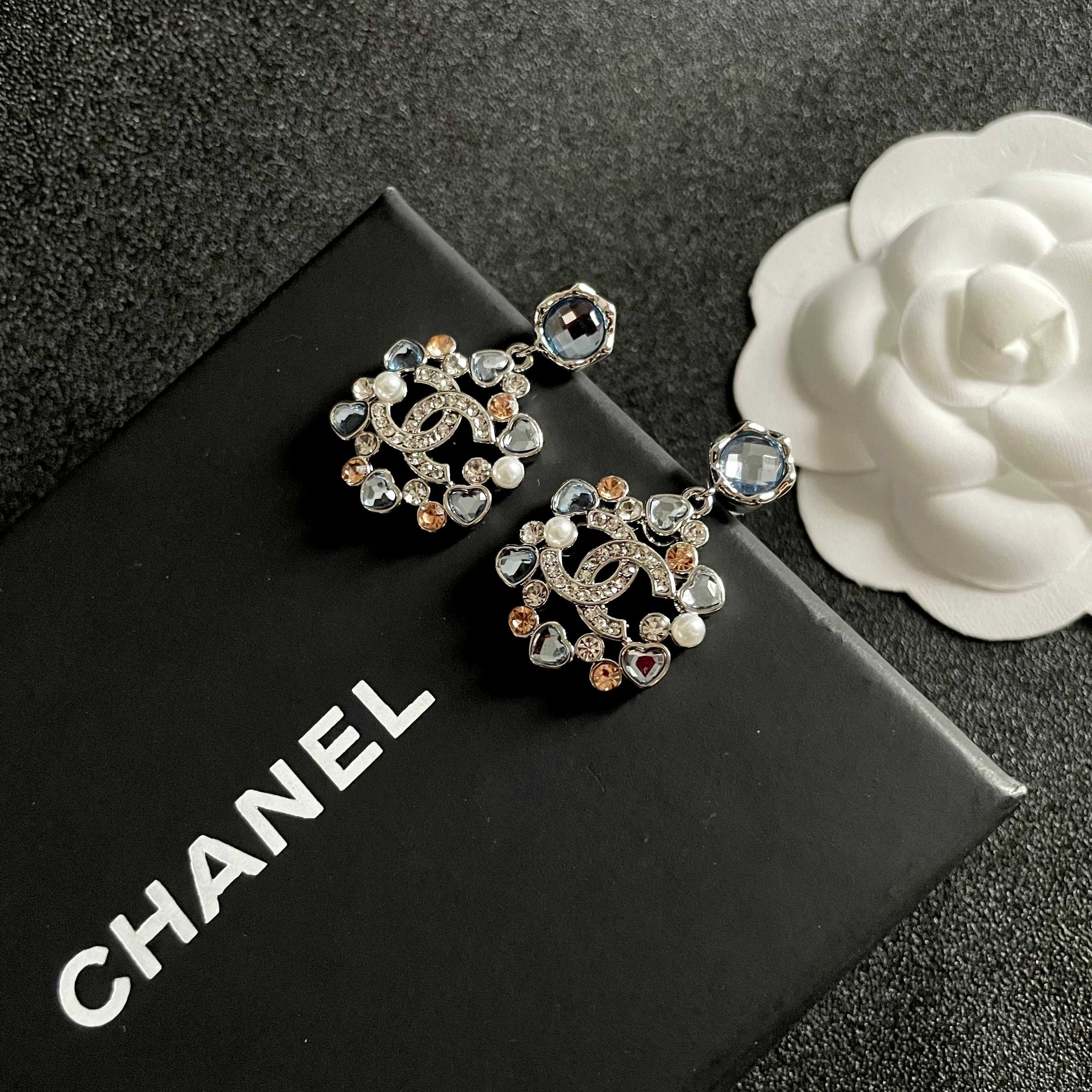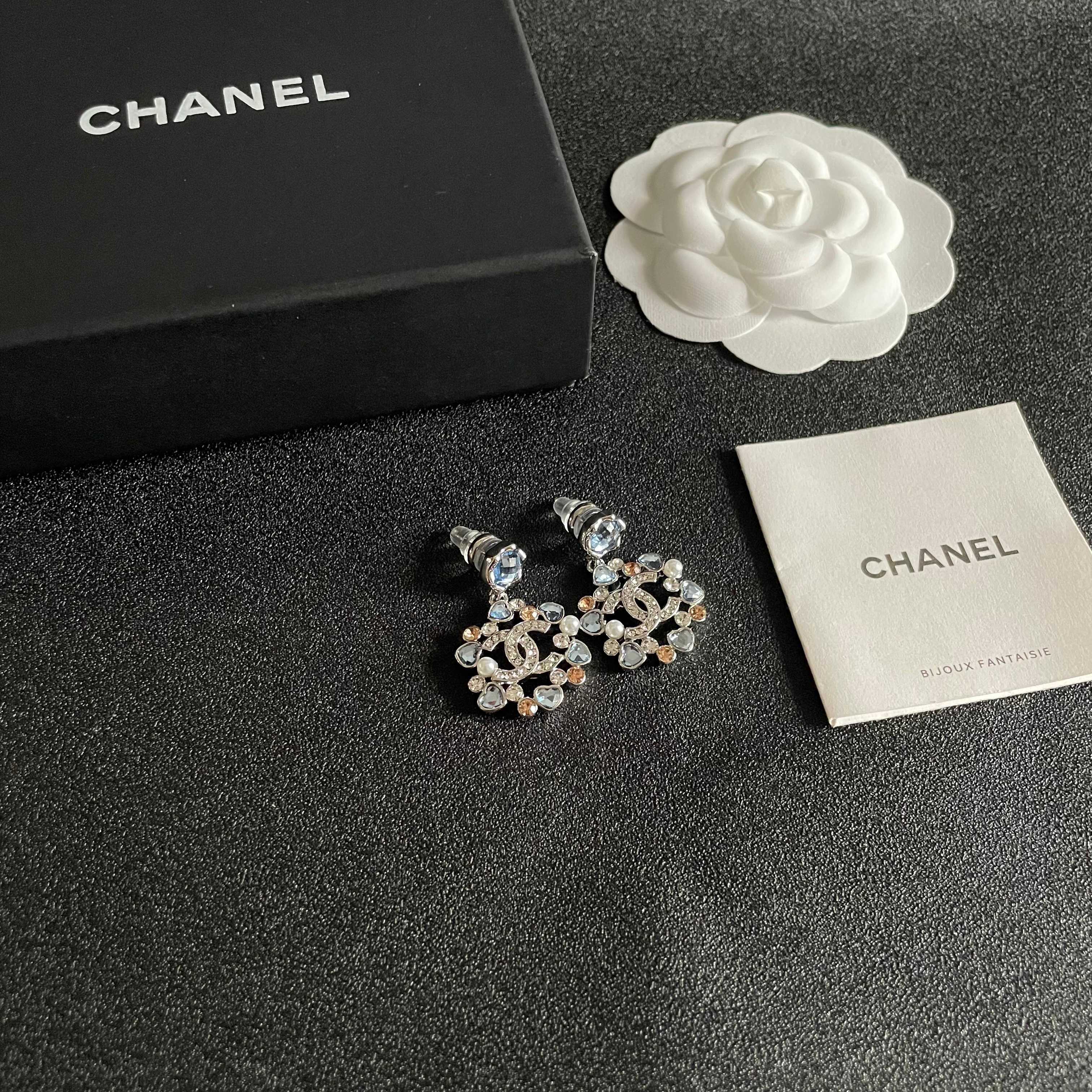 DOUBLE C STUD EARRINGS IN SILVER METAL WHITE PEARL GOLD AND BLUE STONES