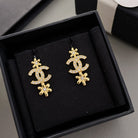 DOUBLE FLOWER CC GOLD DIAMOND DROP EARRINGS