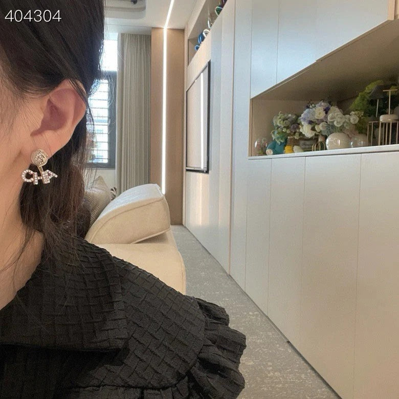 DOUBLE C DROP BALL GOLD DIAMONDS EARRINGS