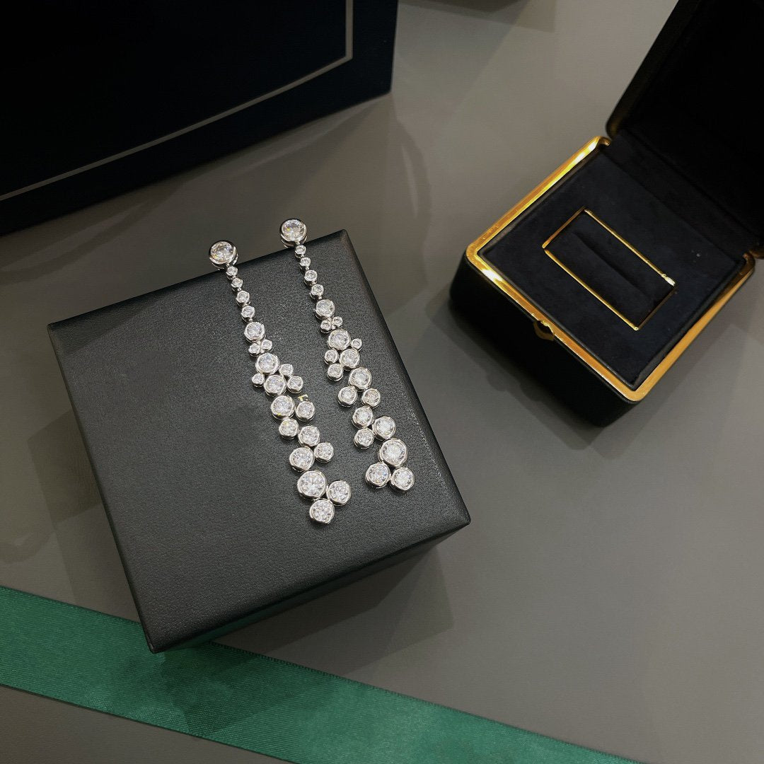 GRA IRREGULA FLOWERS WATER DROPS SILVER DIAMOND EARRINGS