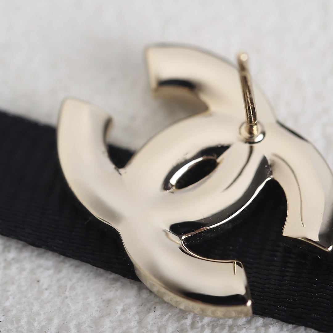 DOUBLE C MEDIUM STUD GOLD BLACK EARRINGS