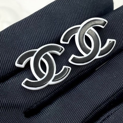 DOUBLE C BLACK ENAMEL STUD EARRINGS