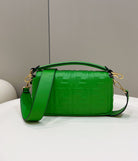 BAGUETTE WITH FF MOTIF 27 IN EMERALD GREEN SOFT LAMBSKIN GOLD HARDWARE