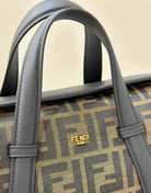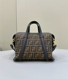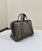FENDI 27 BAG IN BROWN MIX BLACK JACQUARD FABRIC WITH CALFSKIN