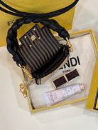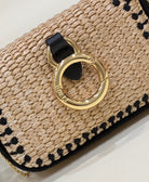 FENDI NANO BAGUETTE 11 BAG IN BEIGE MIX BLACK RAFFIA WITH STRAP GOLD HARDWARE