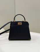 FENDI PEEKABOO MINI 23 BAG IN BLACK CALFSKIN WITH GOLD HARDWARE