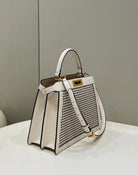 PEEKABOO ISEEU 34 IN WHITE PERFORATED CALFSKIN GOLD HARDWARE