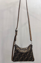 SHOULDER BAG 19 WITH FF MOTIF IN BROWN JACQUARD FABRIC
