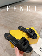 FENDI BAGUETTE SLIDES IN BLACK LAMBSKIN