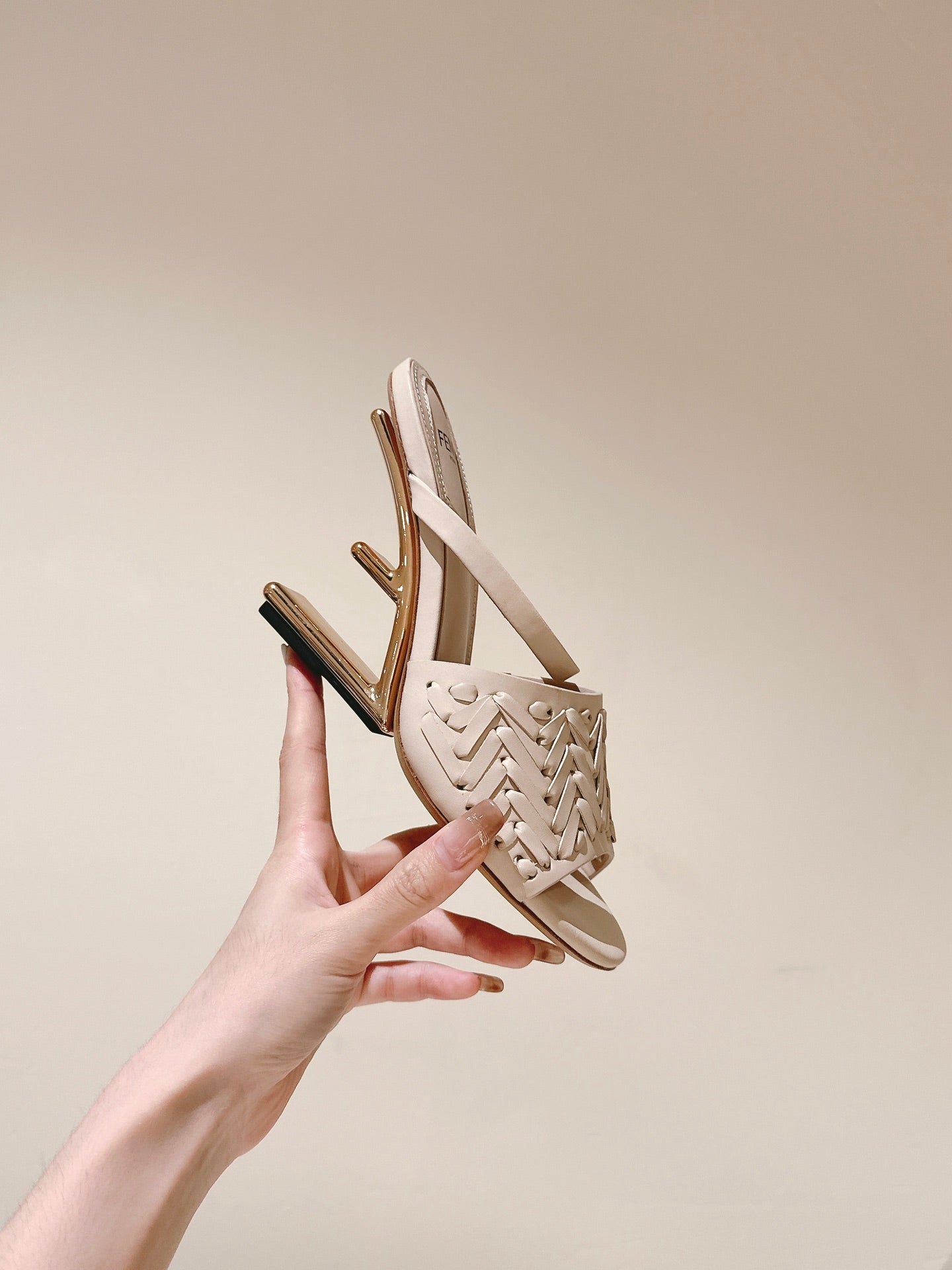 FENDI FIRST HIGH-HEELED SANDALS 85 MM IN BEIGE LAMBSKIN GOLD HARDWARE
