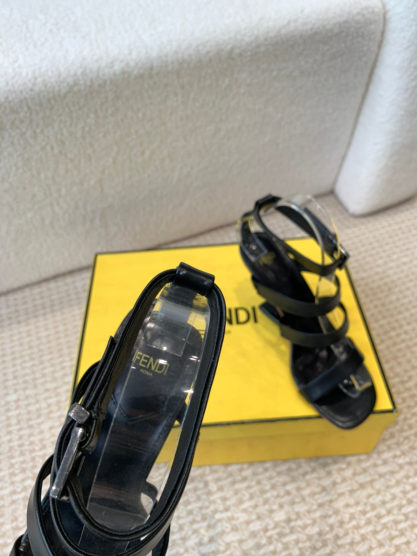 FENDI HIGH SANDAL 10 CM IN BLACK CALFSKIN