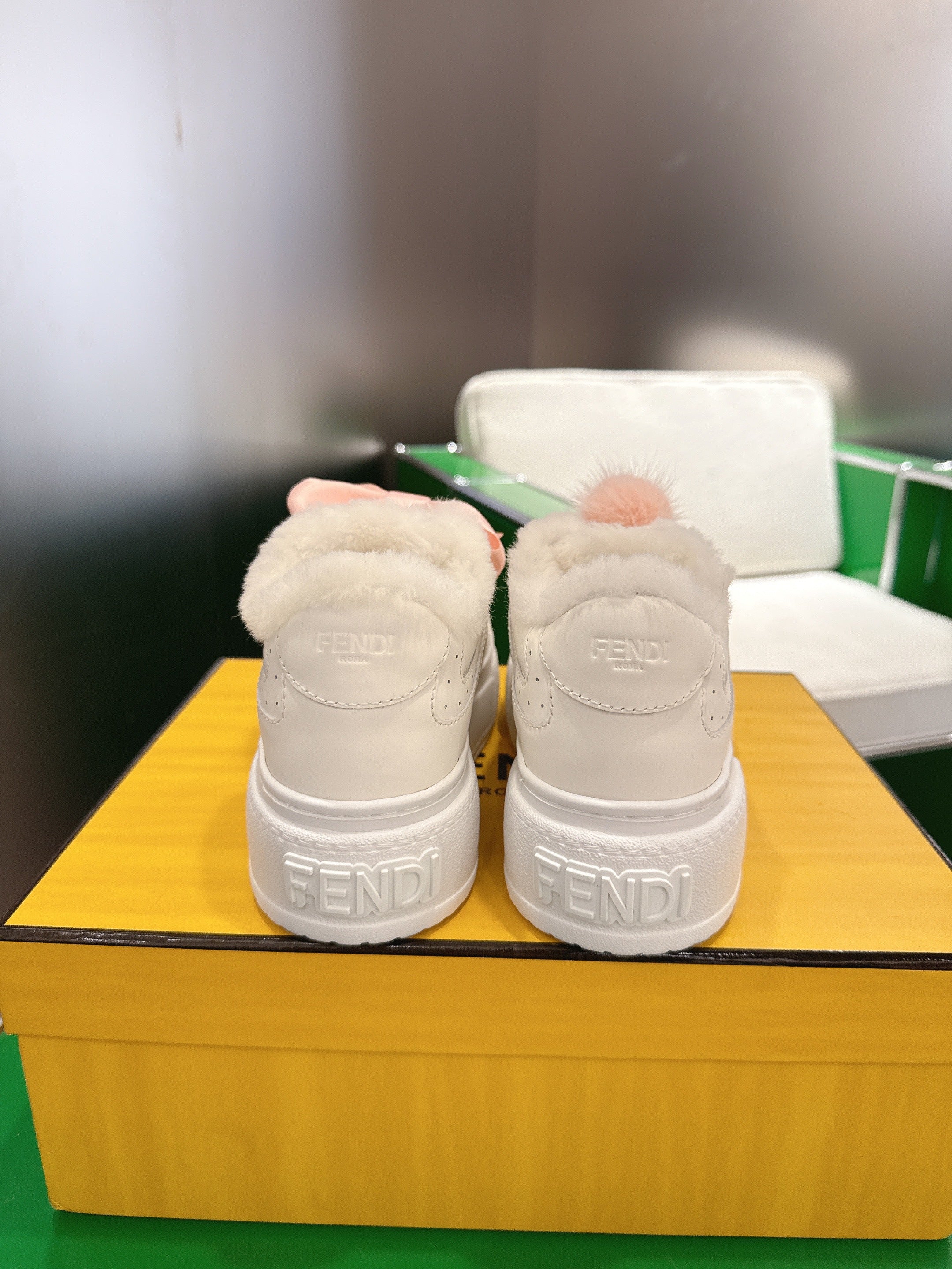 Fendi 2025 Match Platform Sneakers White Leather Wool 562581