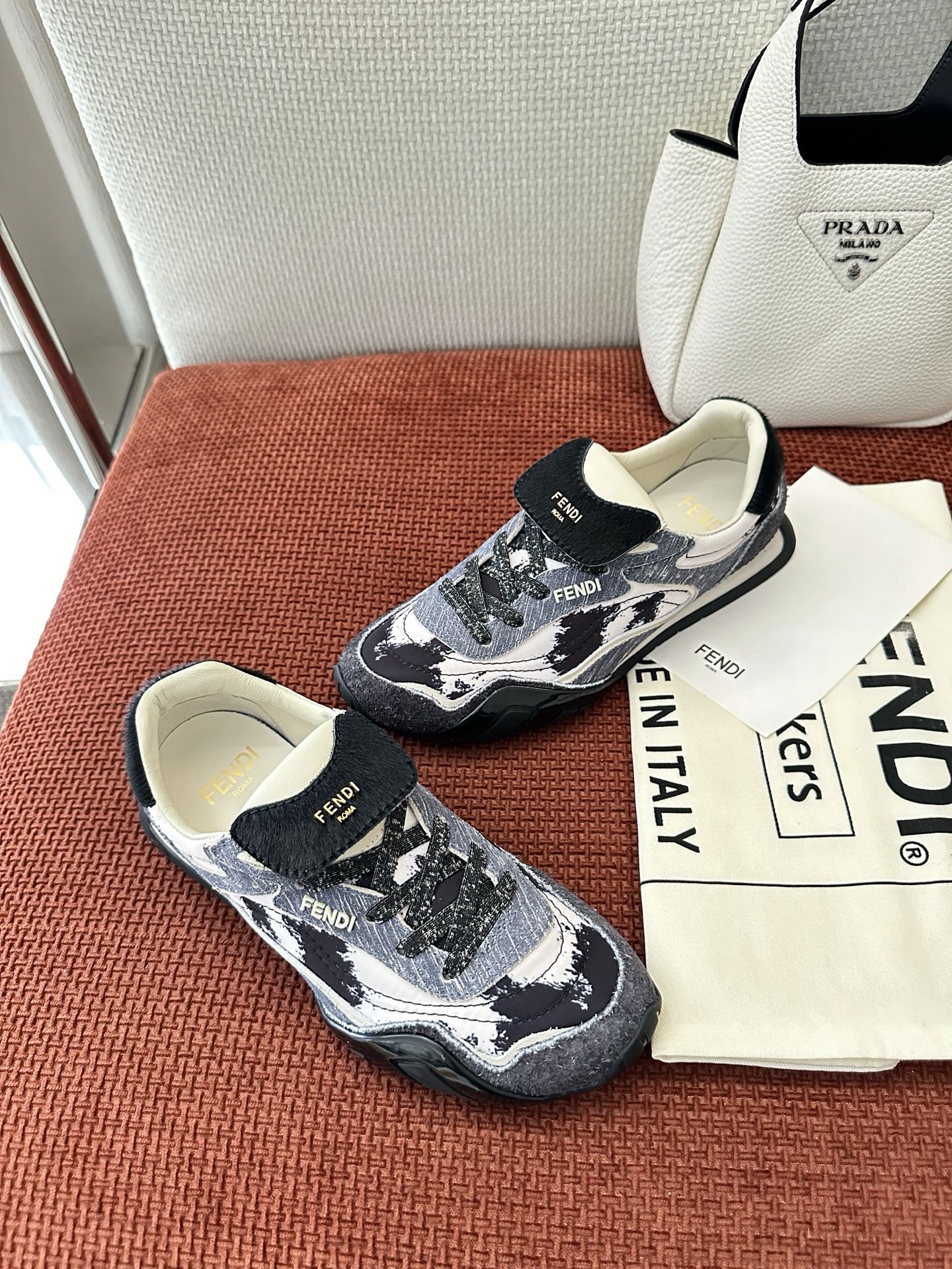Fendi 2025 Wave Pulse Sneaker Black Gray Suede Cowhide 562136