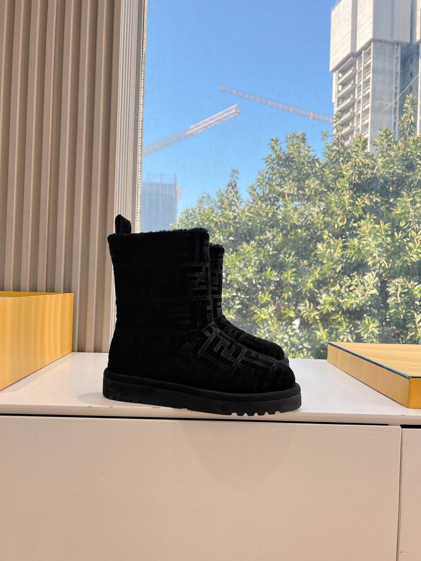 Fendi Apres Chic with FF chamois Boots Black Suede 475232