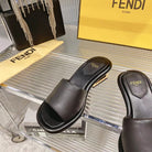 FENDI BAGUETTE SLIDES WOMEN IN BLACK CALFSKIN