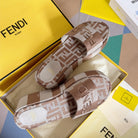 FENDI PLATFORM WEDGES IN ASH BROWN MIX WHITE FF MONOGRAM FABRIC