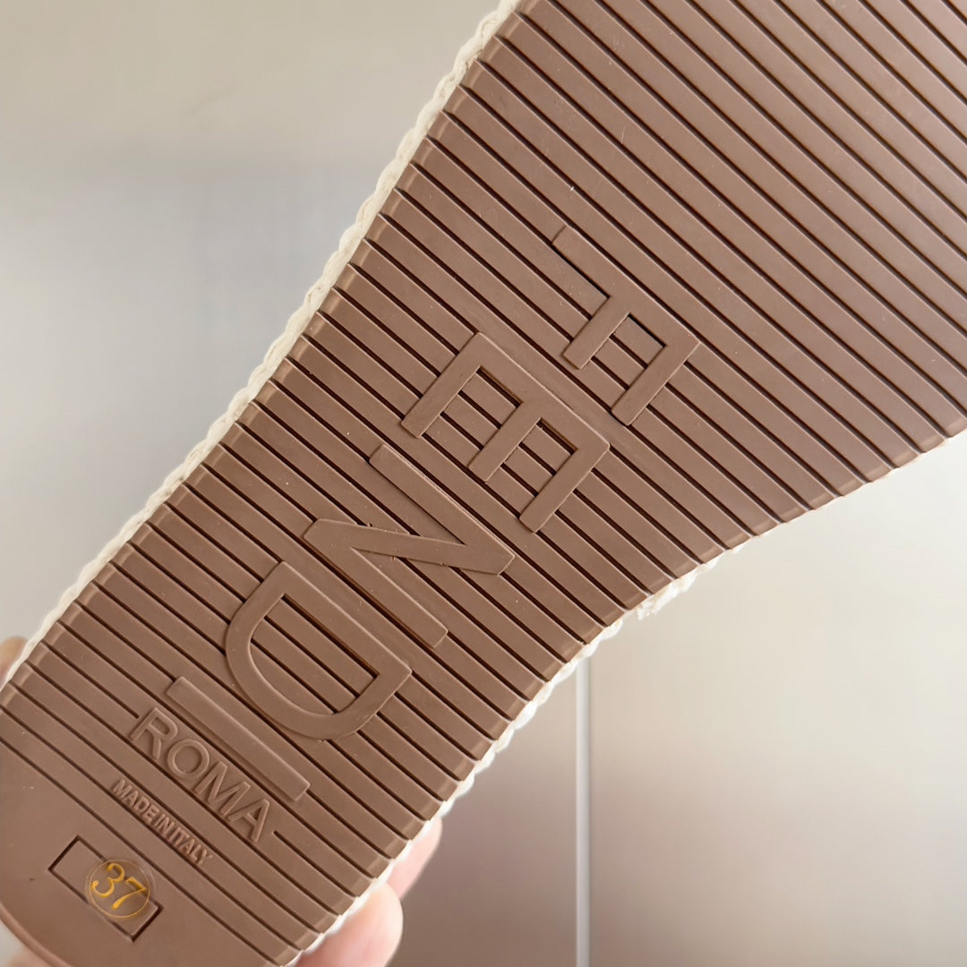 FF Women Roma Signature White Grey Canvas Leather Slide
