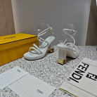 FENDI CHUNKY HIGH-HEELED SANDAL IN WHITE CALFKIN WITH GOLD HARDWARE
