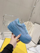 FENDI LOW-TOP TRAINER IN CERULEAN BLUE CALFSKIN