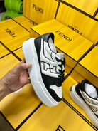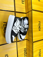 FENDI THICK-SOLDED SNEAKER IN WHITE AND BLACK LAMBSKIN