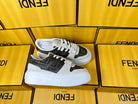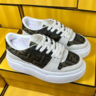 FENDI THICK-SOLDED SNEAKER IN WHITE SUEDE AND BROWN MONOGRAM FABRIC