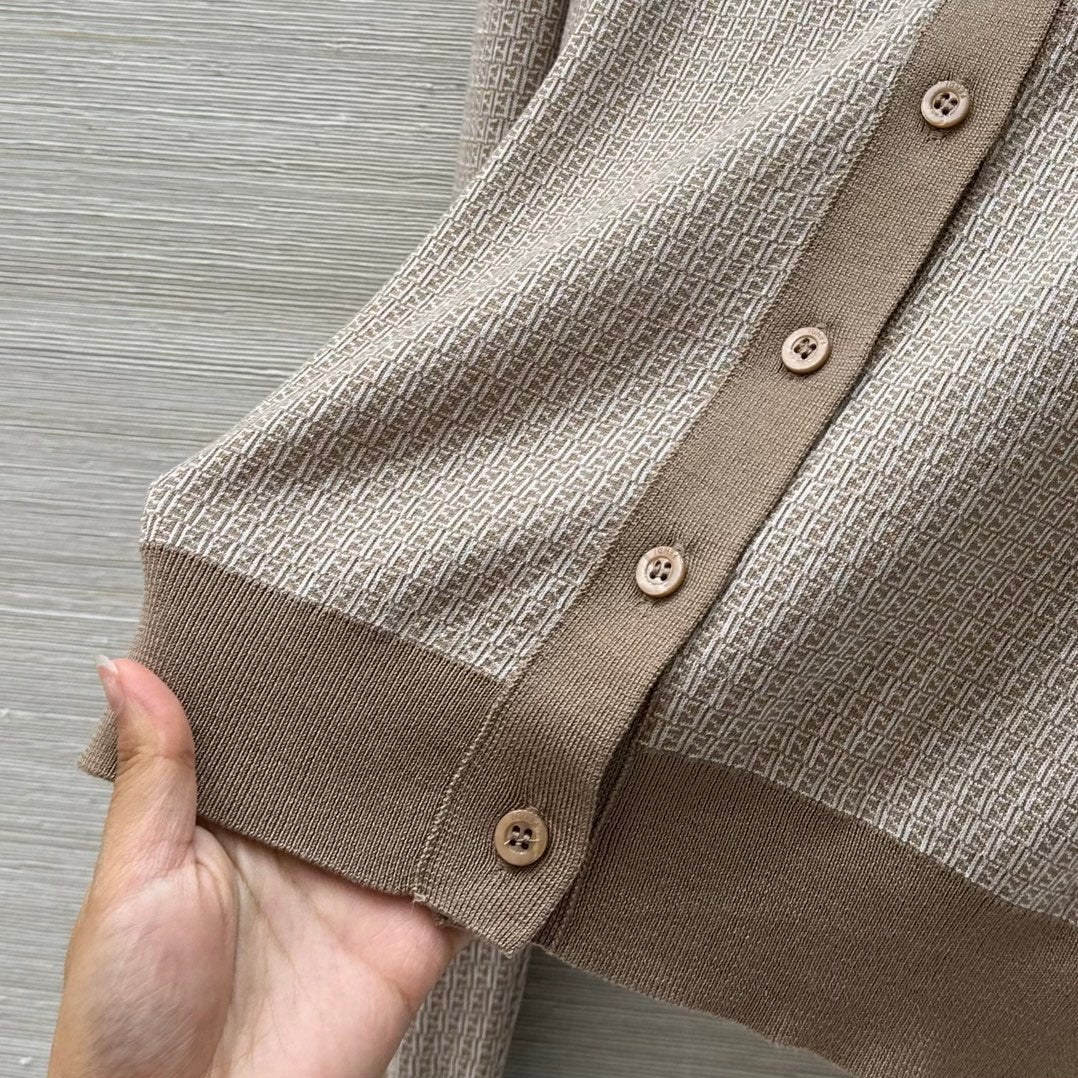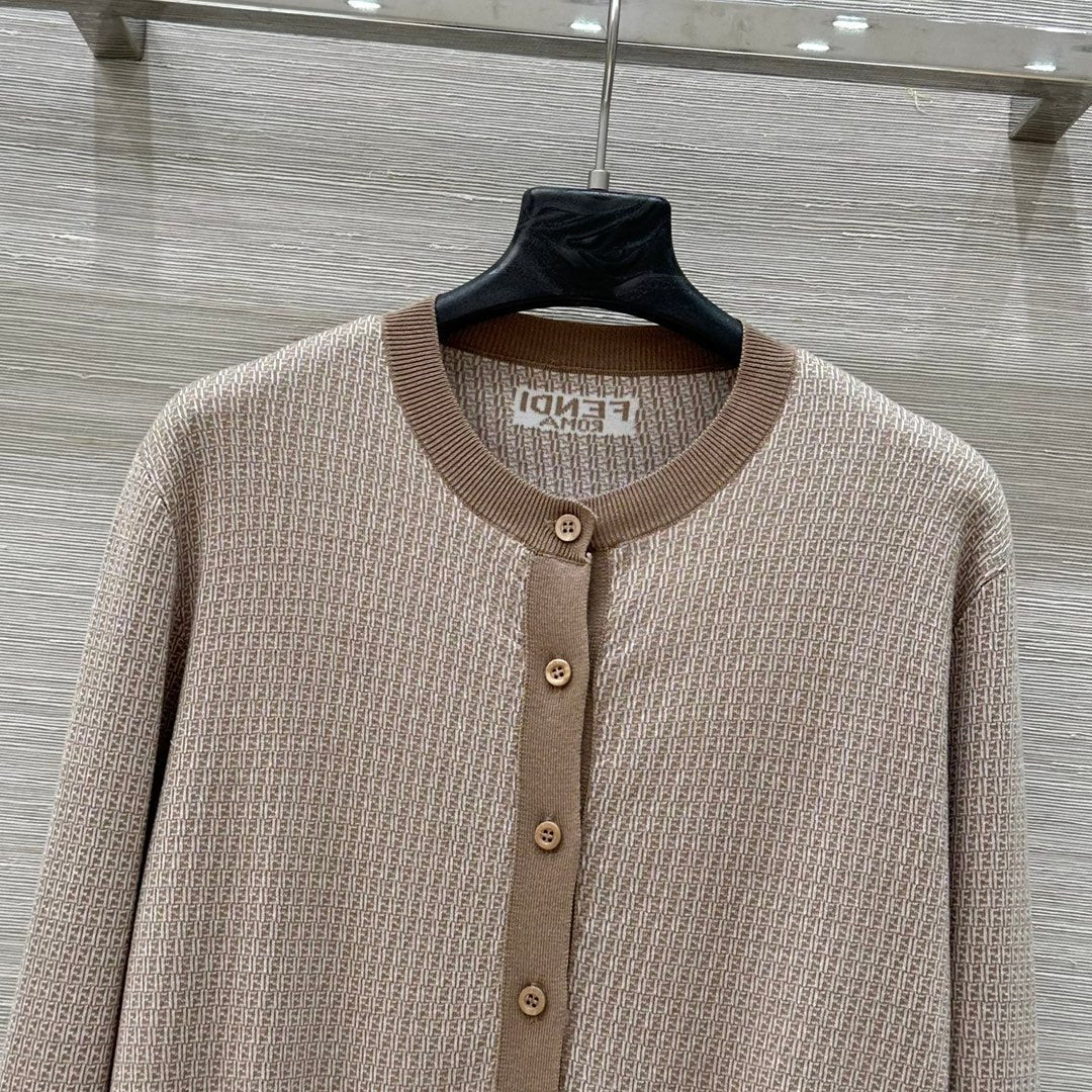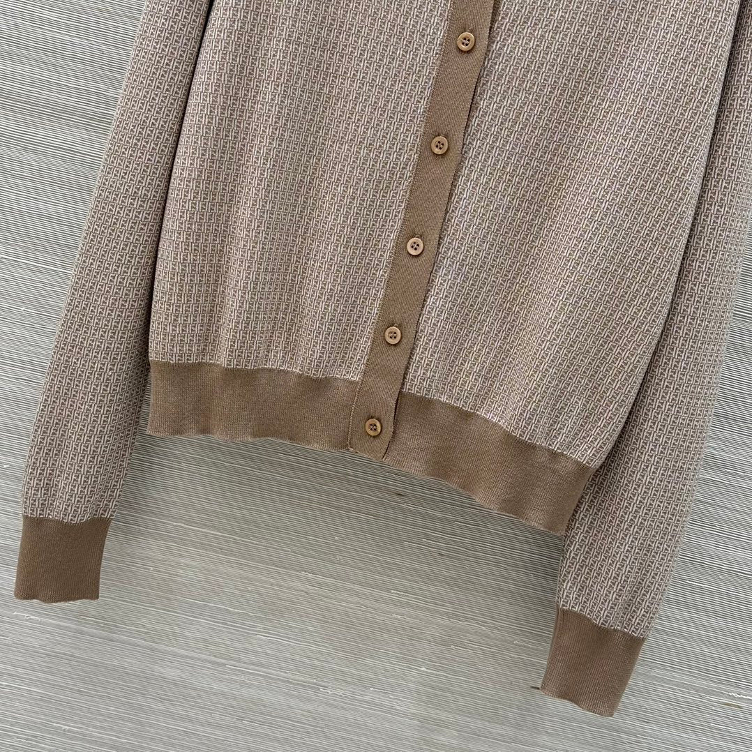 Fendi Double f Letter Knitted Cardigan Brown Wool