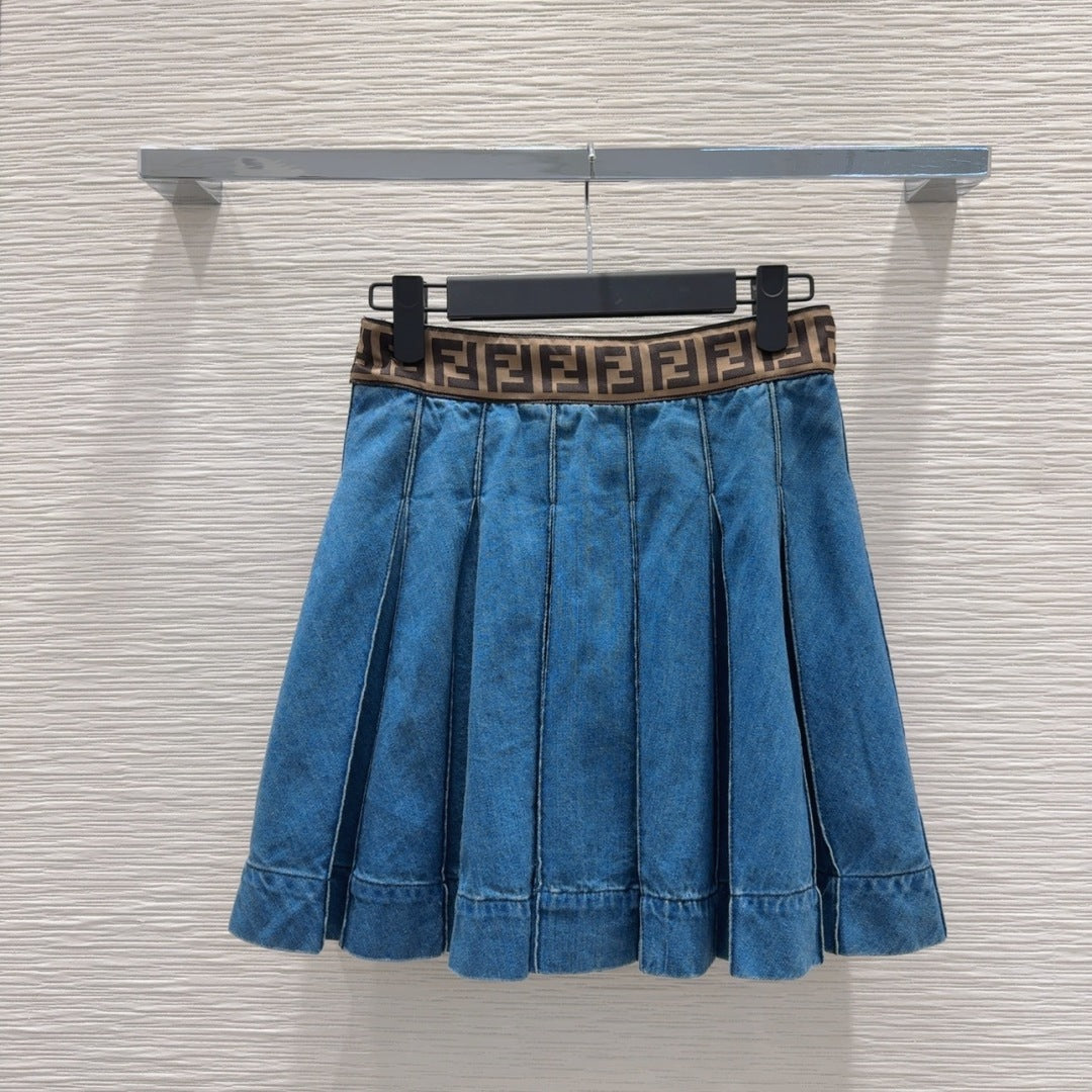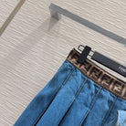 Fendi 2025 Pleated Denim Skirt Blue Cotton