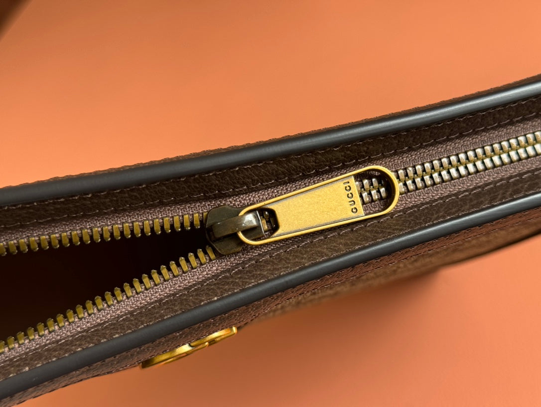 Gucci 25 Softbit 46cm Brown Gold Suede Leather 290512