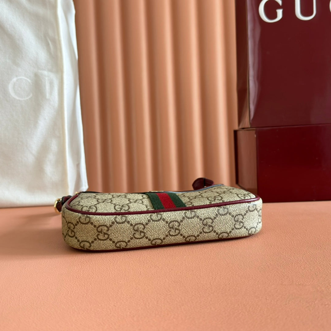 GG Ophidia Mini Shoulder Bag Red Beige Brown Leather Canvas