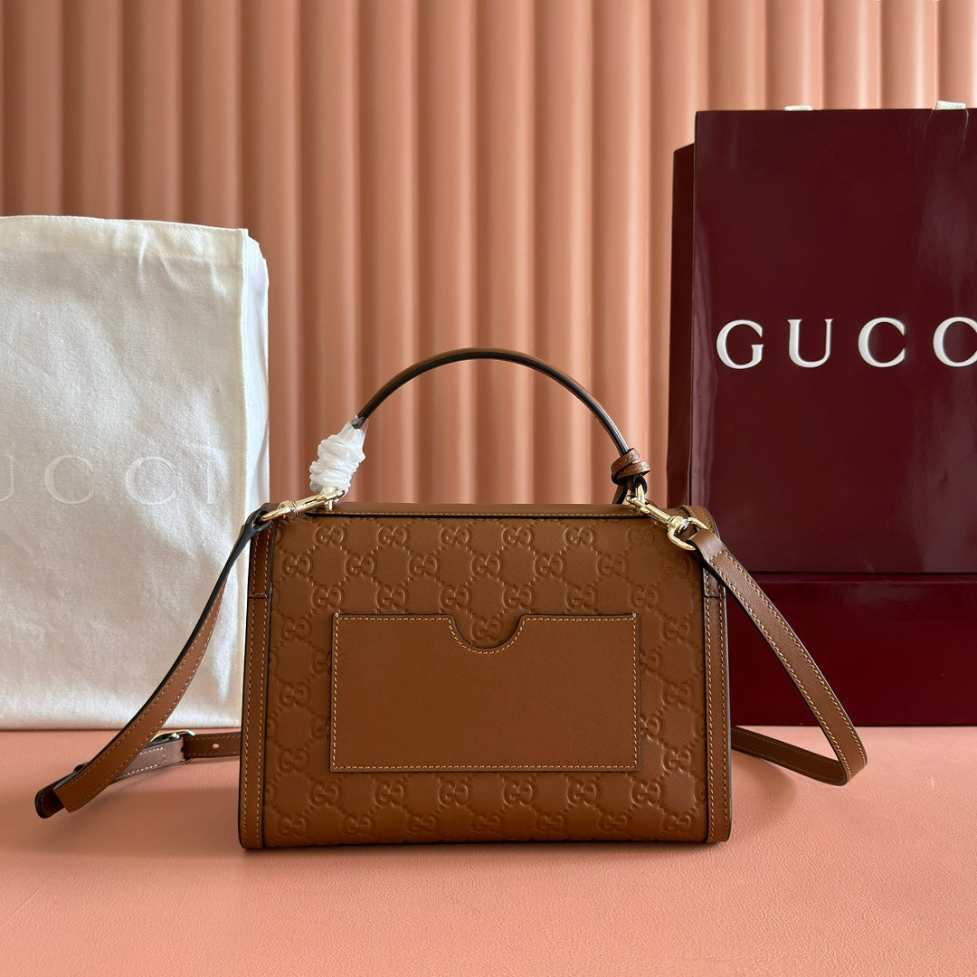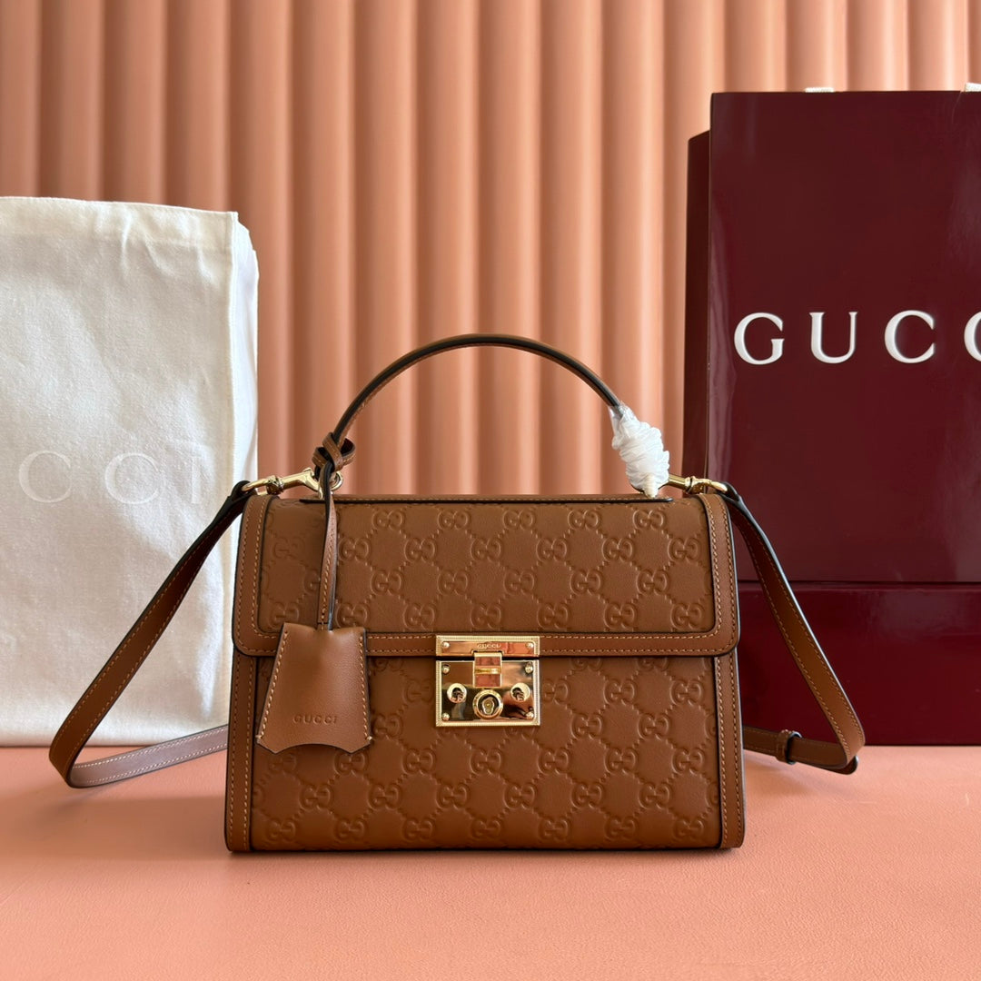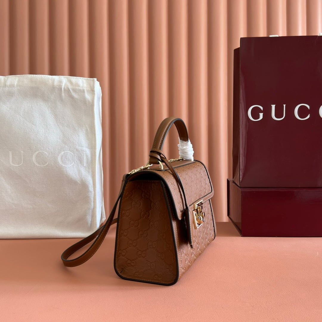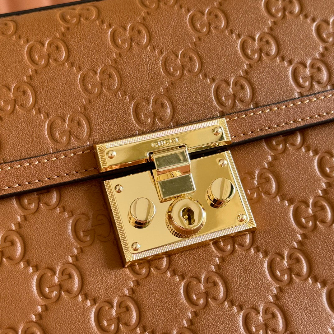 GG Padlock Handbag 26cm Brown GG Pattern Leather