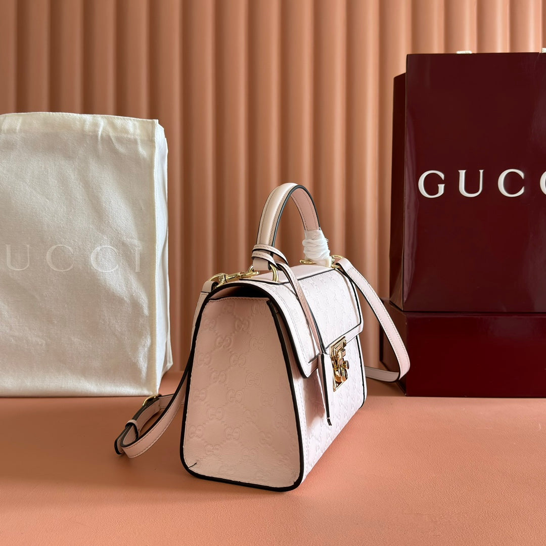 GG Padlock Handbag 26cm Muted Pink GG Pattern Leather