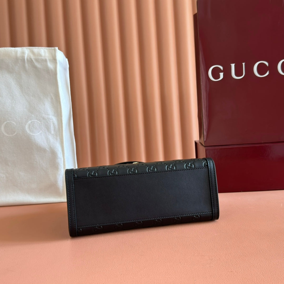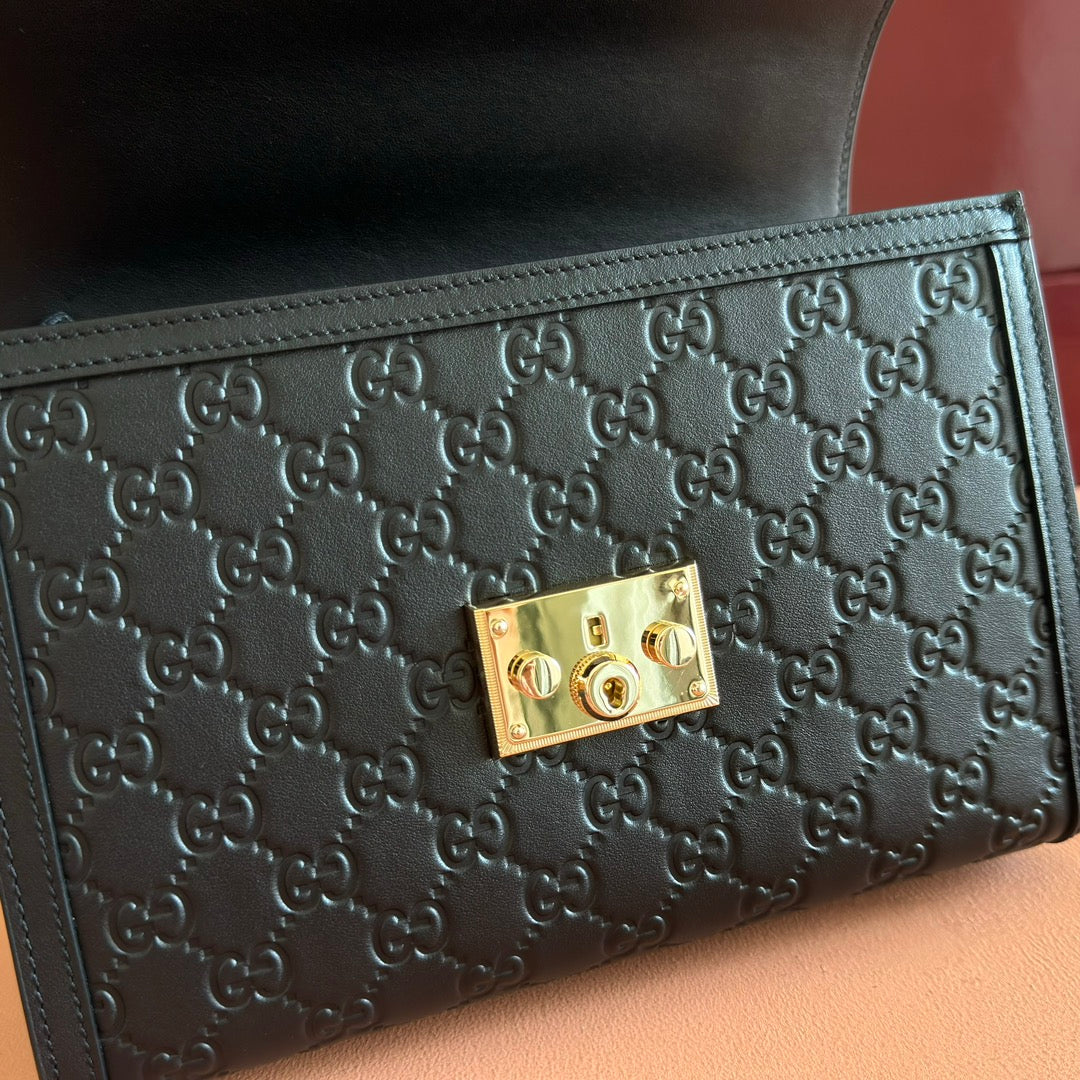 GG Padlock Handbag 26cm Black GG Pattern Leather