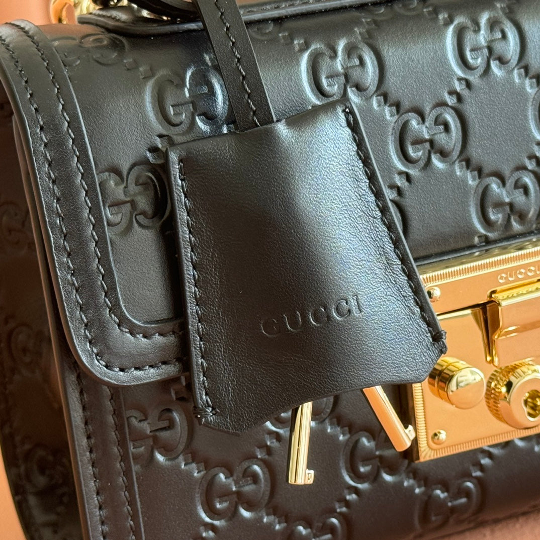 GG Padlock Handbag 20cm Black GG Pattern Leather