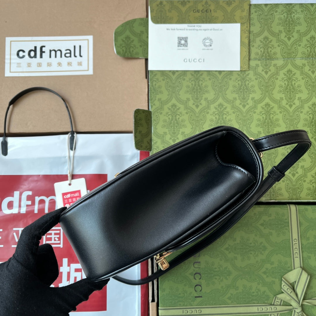 EQUESTRIAN STYLE SHOULDER BAG 21 IN BLACK CALFSKIN GOLD HARDWARE