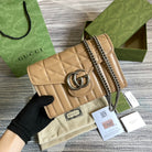 GG MARMONT MINI 20 SHOULDER BAG IN CAMEL BROWN CALFSKIN