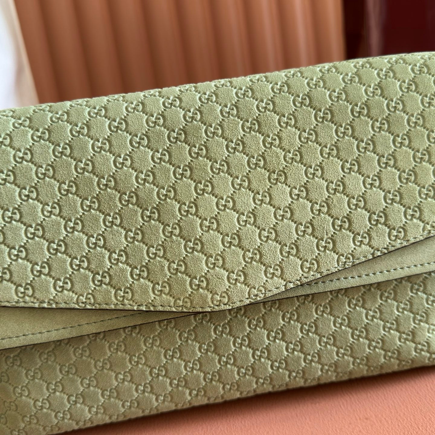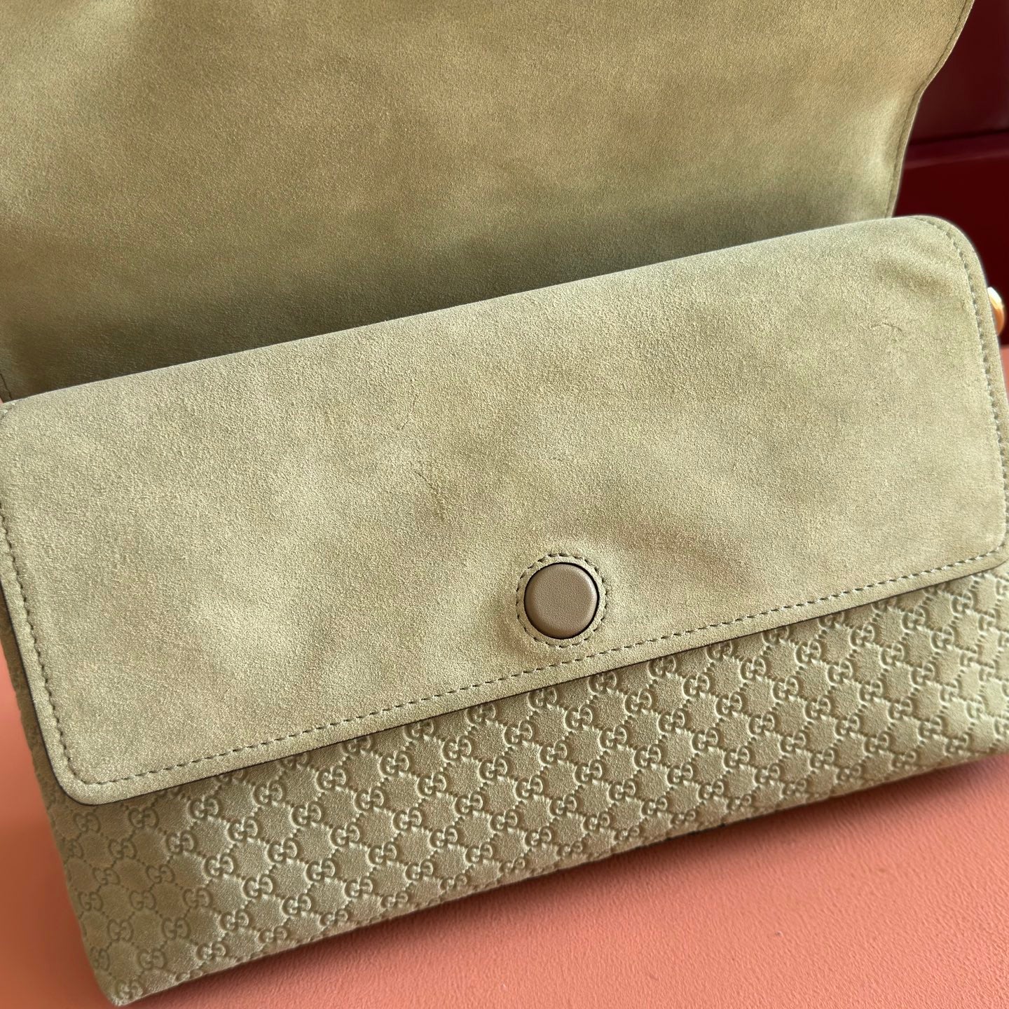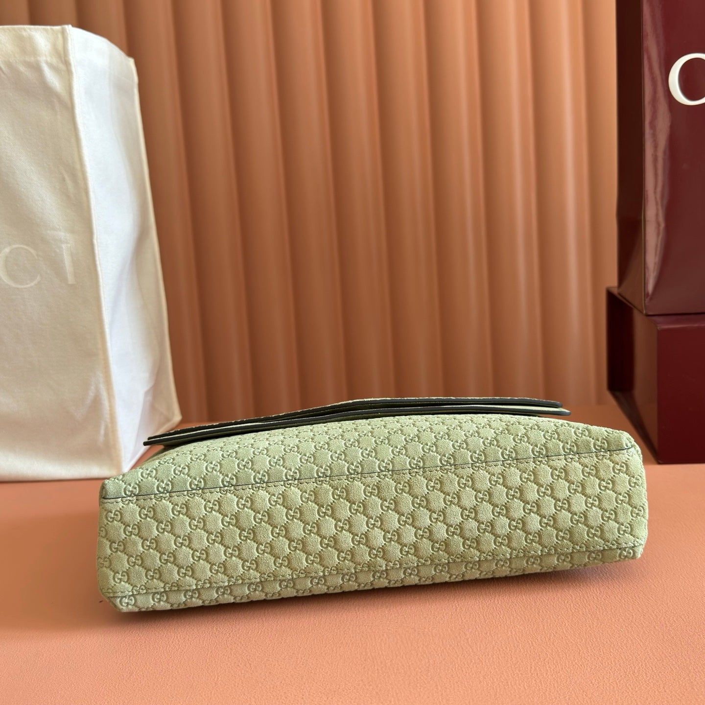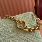 GG Medium Shoulder Bag With Chain Light Olive Green GG Suede