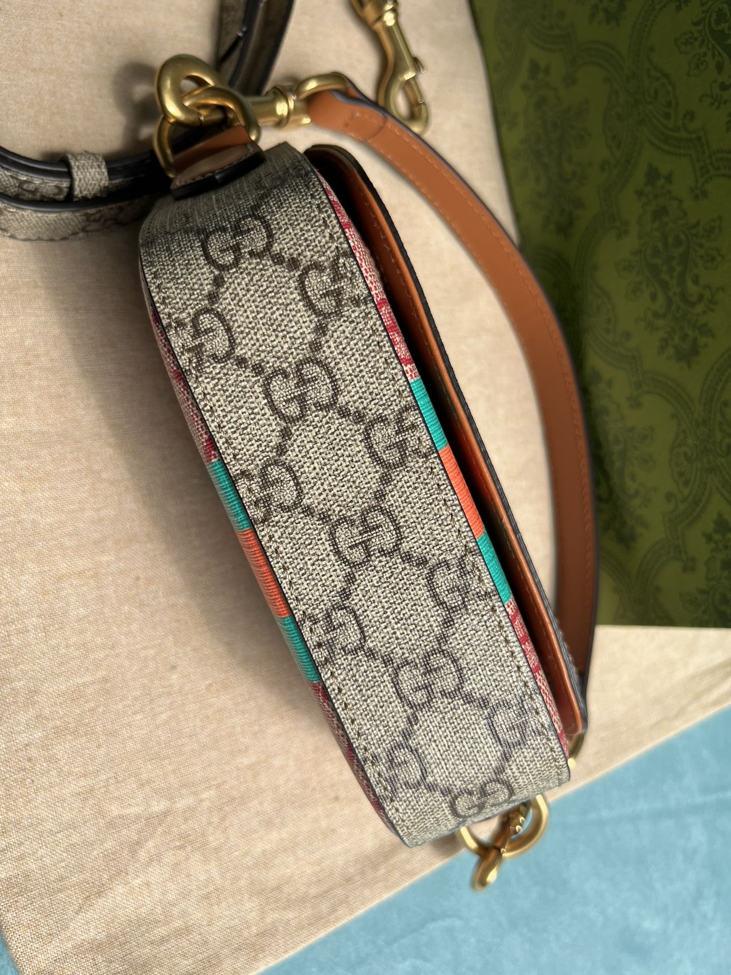 GG MINI 13 HANDBAG IN LIGHT PINK AND BEIGE CANVAS