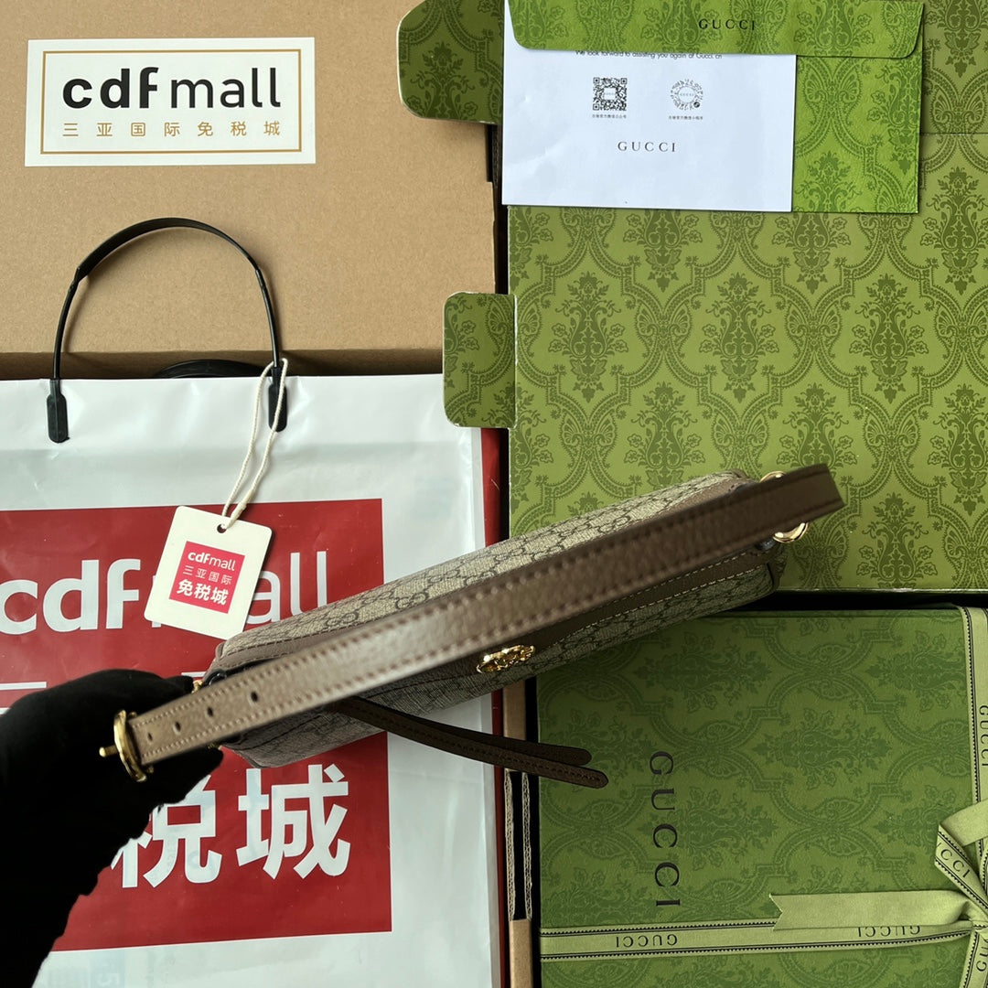 GG Ophidia Small Shoulder Bag 21cm Beige Dark Brown Canvas