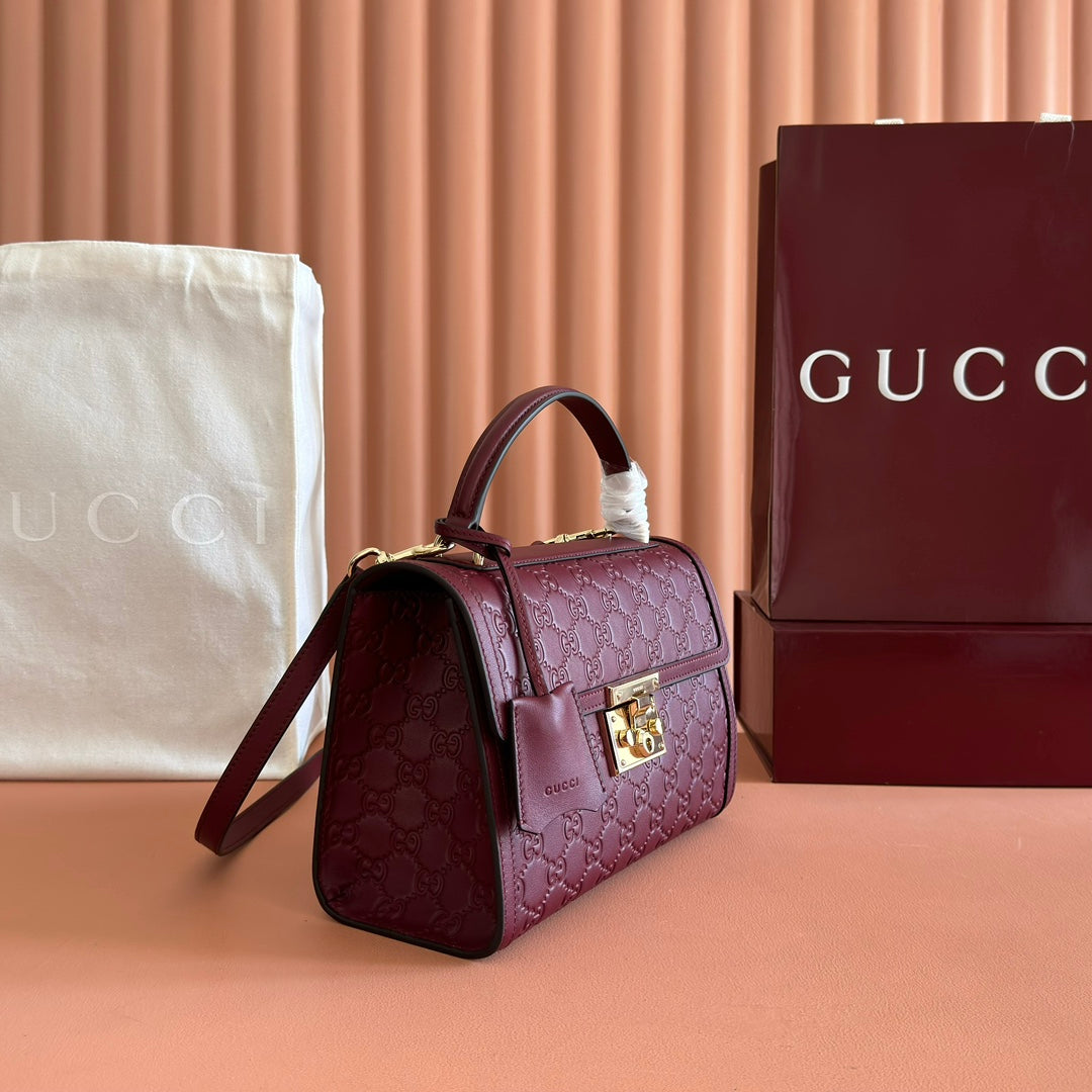 GG Padlock Handbag 26cm Burgundy GG Pattern Leather