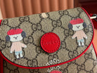 Gucci Dog Print Shoulder Bag White Red Beige Canvas 239661