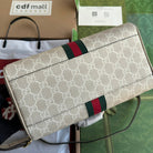 OPHIDIA SMALL TOP HANDLE BAG 26 IN BEIGE WHITE CANVAS AND OAT CALFSKIN TRIM GOLD HARDWARE