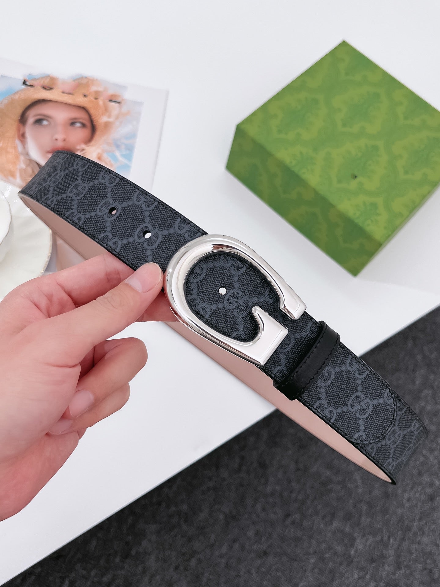 G BELT SILVER BUCKLE BLACK 40MM BEIGE CANVAS