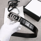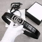 G BELT SILVER BUCKLE CROCODILE POLISHED BLACK 3.8CM