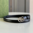 GG MARMONT THIN BELT DOUBLE G BUCKLE BLACK LEATHER