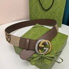 INTERLOCKING G GOLD GREY BUCKLE 40MM BEIGE CANVAS