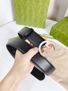 INTERLOCKING G SILVER BUCKLE 40MM BLACK LEAHTER