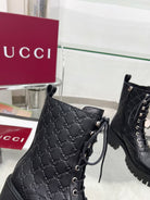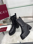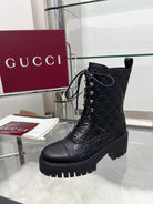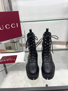 GG Platform Combat Boots Black Logo Embossed Cowhide 476791
