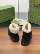 GG SNOW BOOTS IN BLACK EMBOSSED SUEDE AND BEIGE WOOL LINING
